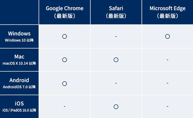 パソコン/スマートフォン/タブレットの推奨動作環境 ※クリックすると画像が拡大されます。 ※全てのブラウザにおいてJavaScriptを「オン」Cookieを「受け付ける」に設定※その他のOSおよびブラウザは一部機能において正常に動作しない可能性がございますので、サポート対象外とさせていただいております。※上記の推奨動作環境を満たしていても端末(環境)固有の問題(インストールしたソフトやプラグイン、ブラウザの拡張機能の影響等)が通信を阻害することもあり正常に動作しない可能性がございます。 関連記事 アプリの推奨動作環境 サンプル動画で再生テストを行う。 テレビデバイスの推奨動作環境 テレ東BIZの会員の種類と料金を教えてください。 利用登録を行った端末以外でも視聴できますか?