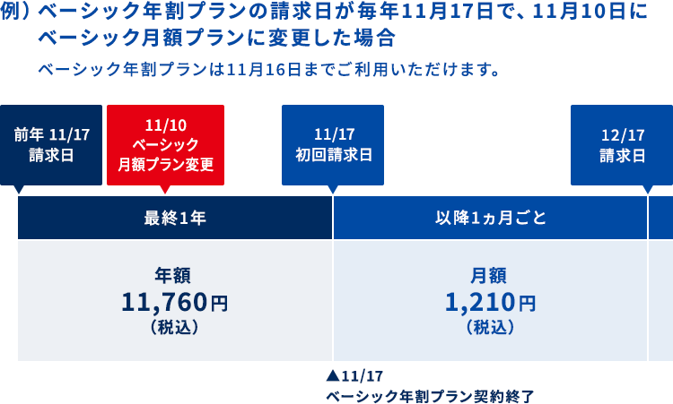 ■ ベーシック年割プラン(Web会員)からベーシック月額プランへ変更した場合の課金スケジュール