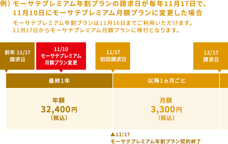 ■ モーサテプレミアム年割プランからモーサテプレミアム月額プランへ変更した場合の課金スケジュール