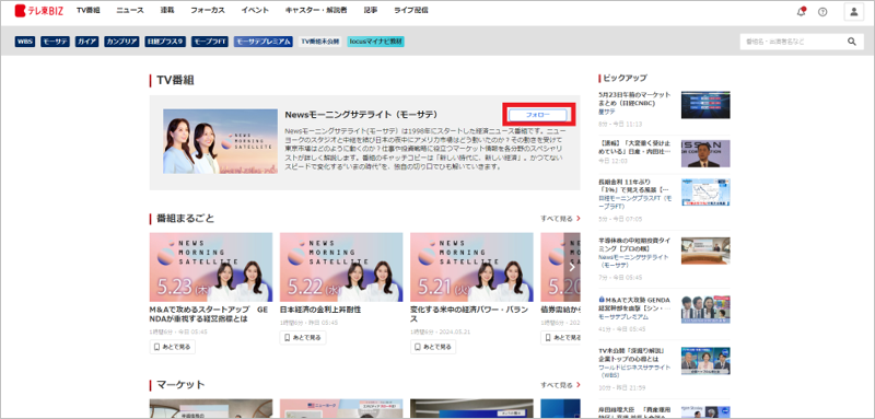 お気に入りの番組、連載、キャスター・解説者などをフォローしていただきますと、最新コンテンツがマイページ内でチェックできる機能です。