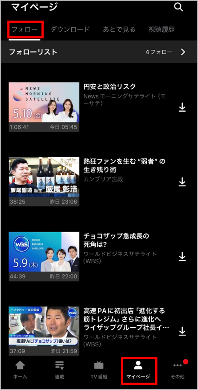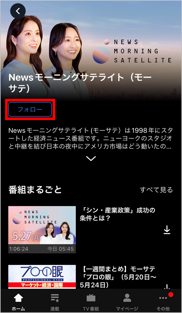 フォローした番組は、マイページの「フォロー」からご確認いただけます。
