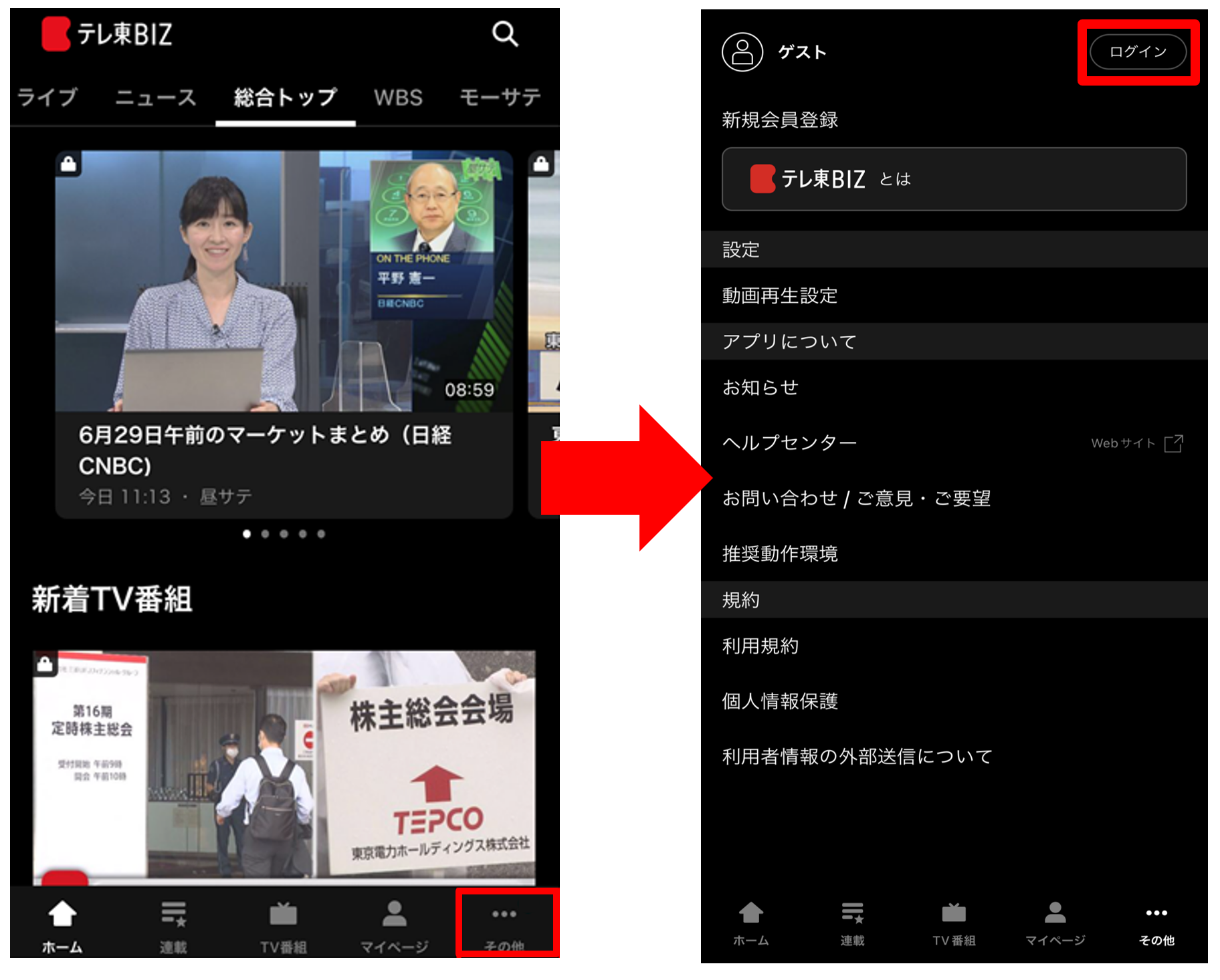 2.画面下部の「その他」をタップし、上部にある「ログイン」をタップしてください。